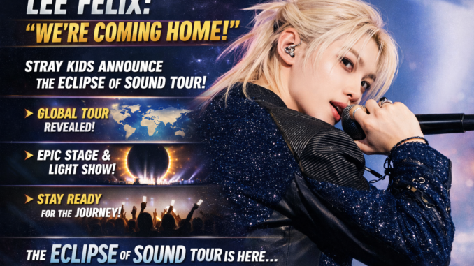 The global K-pop stage erupted in celebration this week as Lee Felix of Stray Kids shared an emotional and electrifying message following the official announcement of the group’s brand-new world tour, Eclipse of Sound. With the simple yet powerful words, “We’re coming home,” Felix ignited a wave of excitement across continents, sending fans—known collectively as STAY—into a frenzy of anticipation.
