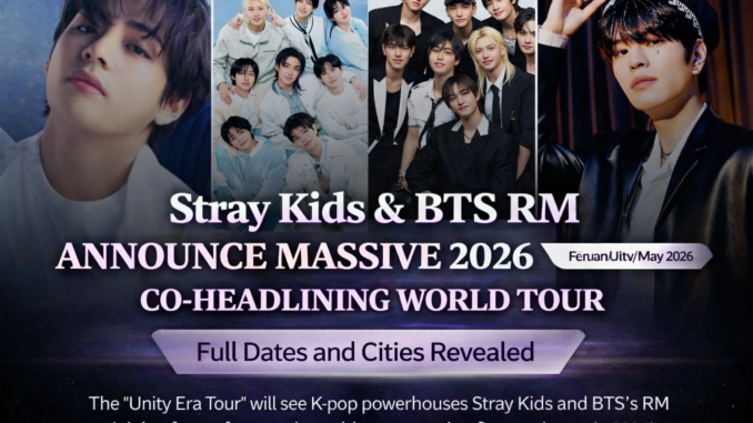 In a stunning announcement that has sent shockwaves across the global music industry, K-pop powerhouses Stray Kids and BTS’s leader RM have officially unveiled plans for a historic 2026 co-headlining world tour. Titled “The Unity Era Tour,” the unprecedented collaboration is already being described by industry insiders as one of the biggest live music events of the decade.